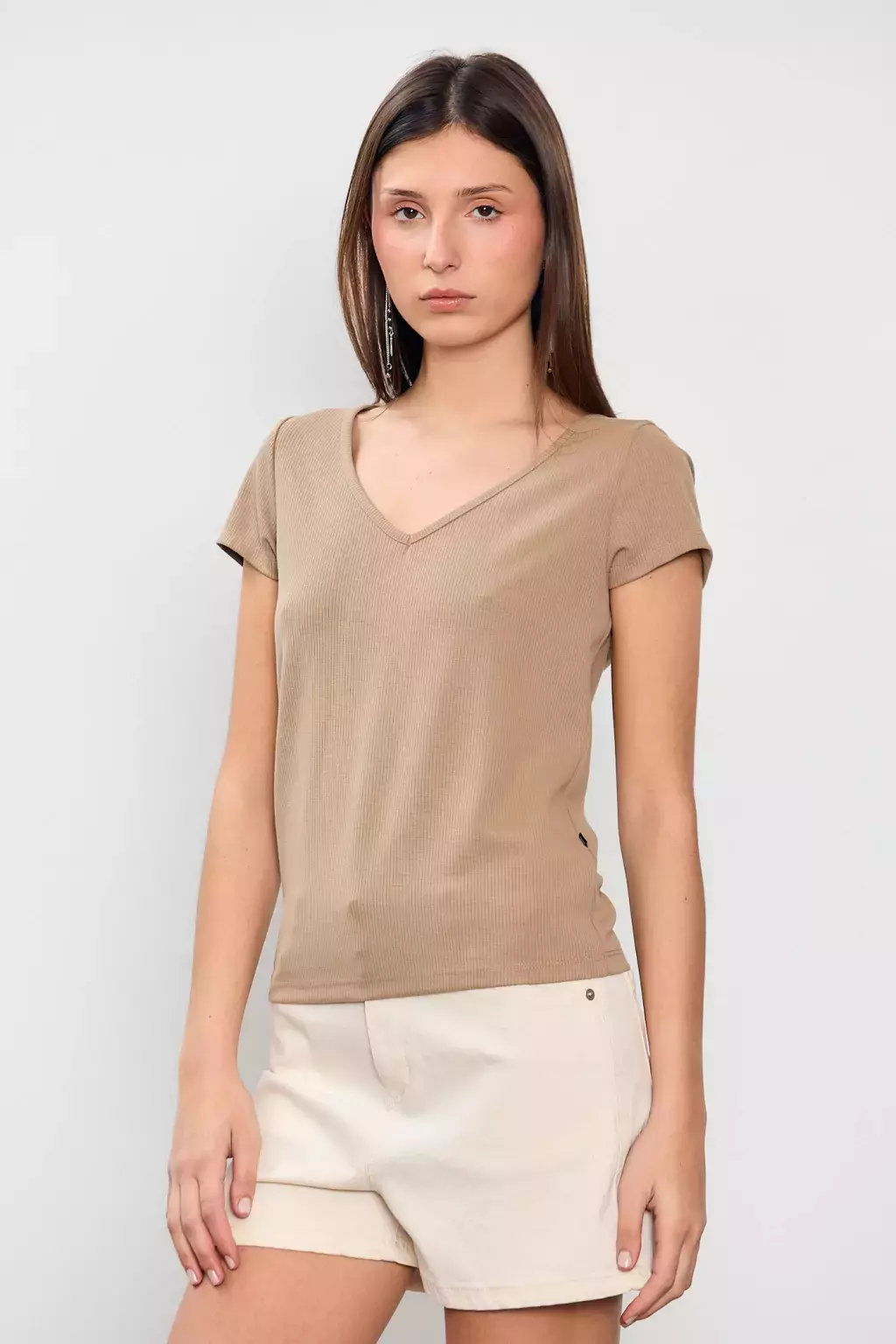 La Remera Adhara es ese infaltable de líneas limpias que realza cualquier look sin esfuerzo. Su escote en V y su calce al cuerpo aportan una silueta estilizada, mientras que el tejido de morley suave le da textura, elasticidad y comodidad total.