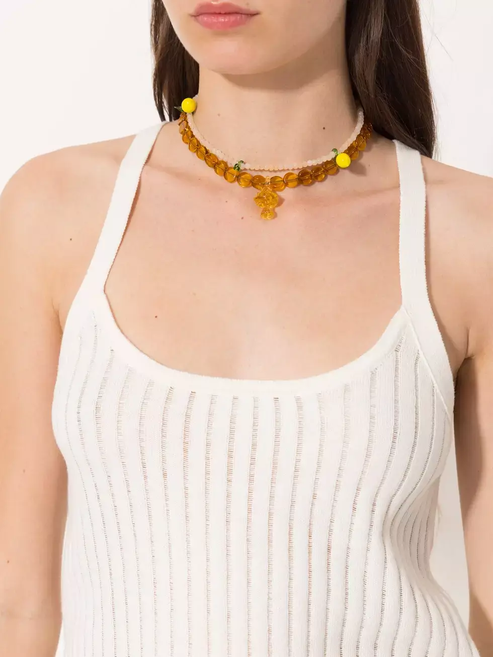 Top Salvador confeccionado en tejido de punto, de escote redondo y sin mangas. Lleva espalda cruzada y es largo a la cadera.